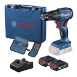 A furadeira e parafusadeira de impacto GSB 185-LI-2BX é uma ferramenta Brushless, ou seja, não vem com escovas de carvão e tem o dobro de vida útil, além de mais autonomia. Ideal para perfurações e parafusamento em MDF, metal e alvenaria. Também é indicada para fixação de acessórios e ferragens, perfuração de placas de drywall e fixação de peças em alvenaria. A furadeira e parafusadeira de impacto GSB 185-LI sem fio conta com 18V-20V*, tem apenas 1.3 kg para facilitar o uso durante o dia de trabalho, sem causar sobrecarga de peso no usuário. Por ser ergonômico, também reduz a fadiga ao final do dia. Sua velocidade chega a 1.900 rotações por minuto (RPM), com impacto de até 27.000 batidas por minuto (BPM) que maximiza a eficiência no local de trabalho, especialmente ao aparafusar ou perfurar madeira, metal e alvenaria. A furadeira e parafusadeira de impacto GSB 185-LI-2BX conta com mandril metálico super robusto e com diâmetro máximo de perfuração de 35 mm em madeira, 10 mm em metal e 10 mm em alvenaria. Ideal para marceneiros, montadores de móveis, artesão e instaladores em geral. A ferramenta acompanha 2 baterias GBA 18V-2Ah, carregador Bivolt de 2 Ah GAL 18V-20, maleta e 23 acessórios. Garantia 1 ano Bosch + 1 ano adicional fazendo o cadastro no aplicativo BeConnected.