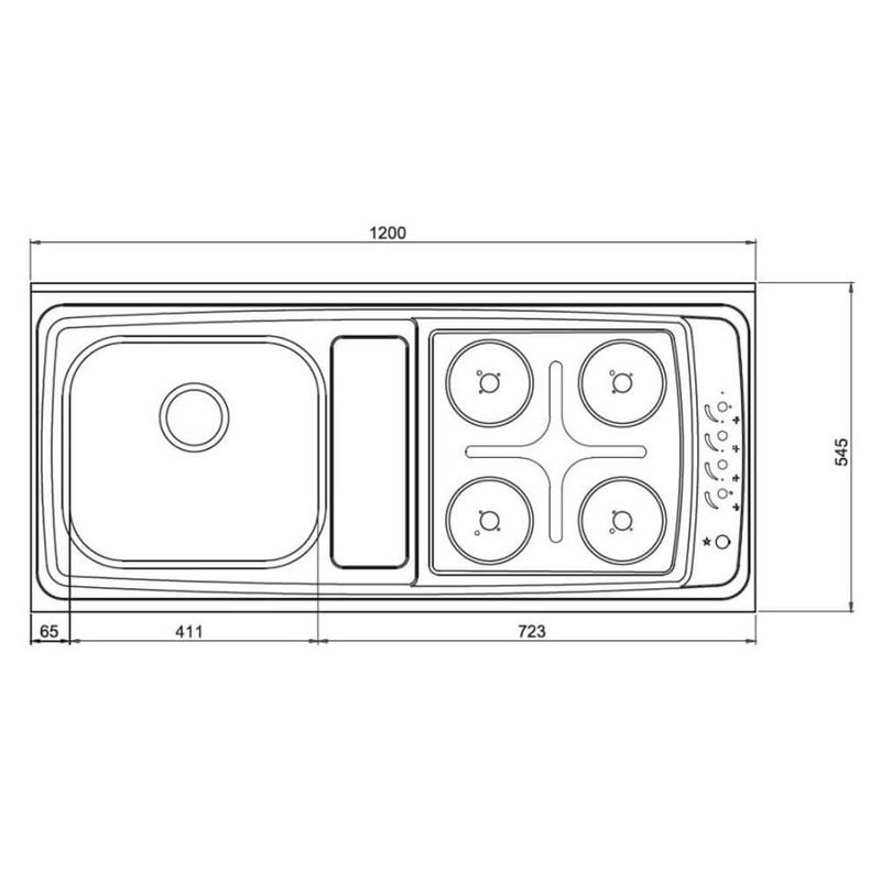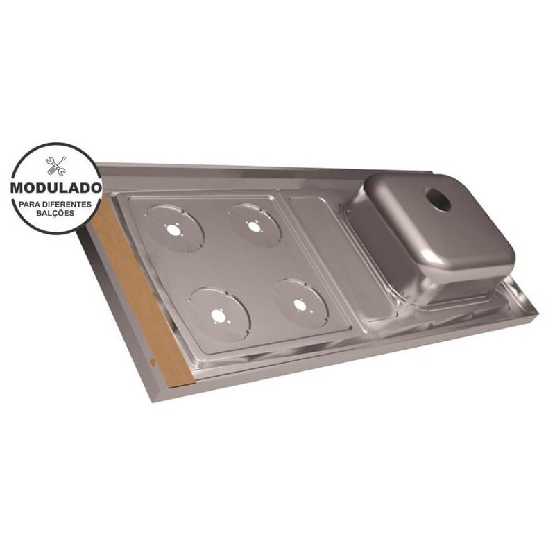 Devido ao MDF de apoio fixado na base inferior, nosso Fogão-Pia,cabe em diferentes modelos de balcões com variação de largura de 1,15 a 1,20 metros