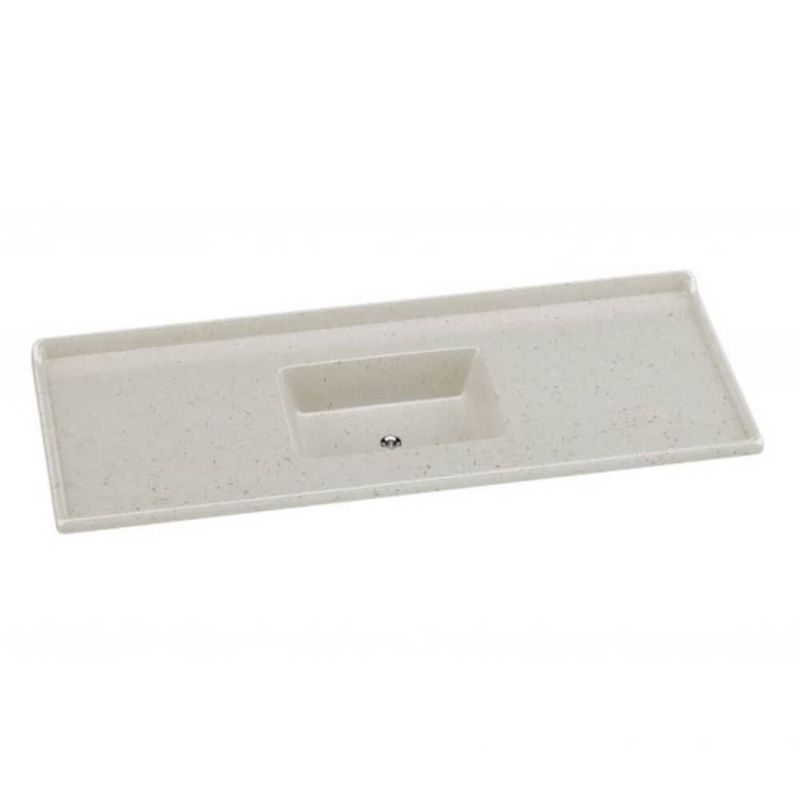 Produto em mármore sintético com espessuras reforçadas, com cobertura granitada de gel coat com brilho e resistência incomparáveis. Superfícies mais lisas sem porosidade proporcionando maior higiene e fácil limpeza. Pias com protetor de parede e caneletas altas, evitando o derramamento acidental de água.