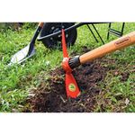 O grande diferencial está no cabo de 90 centímetros em madeira envernizada, que proporciona um manuseio firme e confortável. Ele apresenta encabamento com bucha plástica, um sistema que absorve melhor o impacto e evita que o cabo se solte durante o uso, tornando o trabalho muito mais seguro e eficiente.