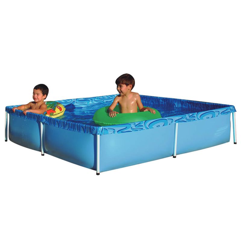 Produzida em lona PVC resistente 100% impermeável e estrutura com tubos de aço, qualquer adulto vai montar a piscina com muita facilidade.