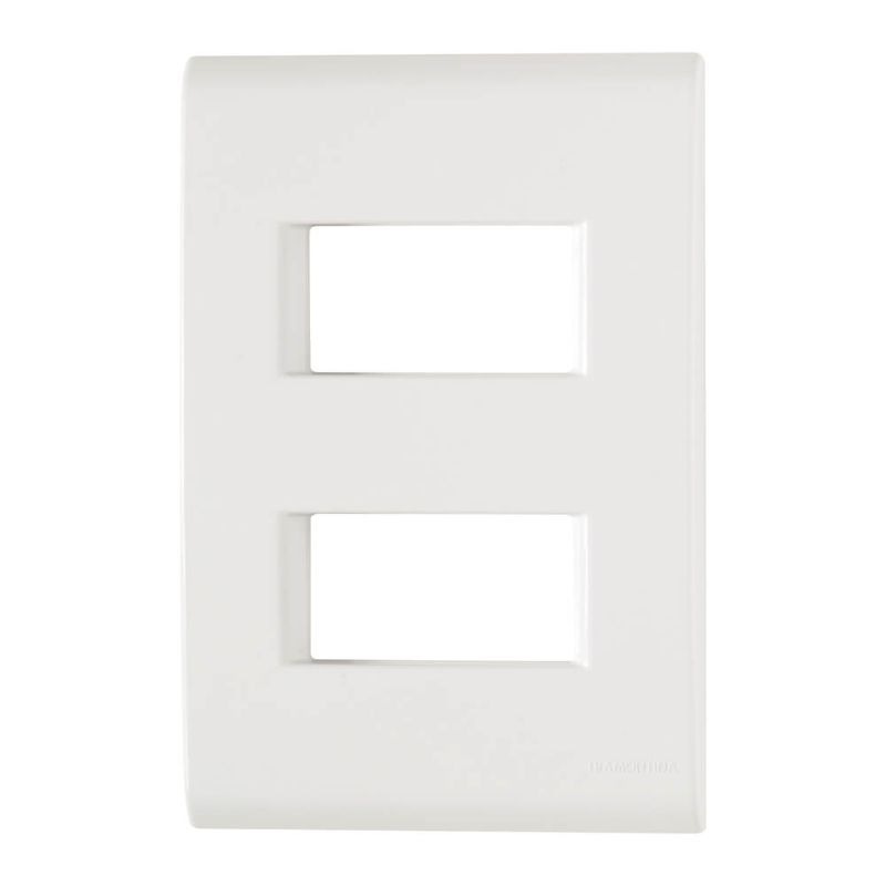 Os espaços vão ficar com mais qualidade e praticidade com a Placa 2 Postos Afastados 4x2 Tramontina Liz Branca. Produzida em termoplástico, ela possui acabamento em brilho na cor branca, característica que não retém poeira. Apresenta o modelo 4x2 e dois postos separados na horizontal para utilizar os módulos da Linha Liz. Pode ainda ser trocada por outras cores da linha, garantindo versatilidade e muito mais estilo. Possui ainda sistema modular em duas peças: placa e suporte, tendo um ajuste entre ambos que torna o acabamento entre a placa e a parede muito mais perfeito, livre de frestas. Possui furo oblongo que facilita a fixação e a regulagem da placa à parede, deixando-a reta. Para um visual ainda mais especial, a fixação não é aparente. Além disso, pode ser fixada em paredes de madeira. Uma peça com visual elegante para embelezar seus ambientes, que acompanha suporte e parafusos para a instalação.