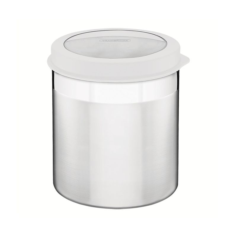 Já pensou contar com um produto que mantém suas características originais, preservando sua beleza, higiene e durabilidade? Este é o Pote Tramontina em Aço Inox com Tampa Plástica Branca e Visor 12 cm de diâmetro 1,5 L da linha Cucina. Ideal para armazenamento de alimentos não perecíveis, o pote é de fácil limpeza devido seu design arrojado sem cantos, e conta com detalhes em brilho em meio a seu acabamento fosco. Você não precisa se preocupar com a conservação do seu alimento, pois a tampa conta com perfeita vedação, além de um visor para que você possa controlar seu mantimento. Sujou? Pode lavar sem problemas na máquina de lavar louças, não tem problemas!