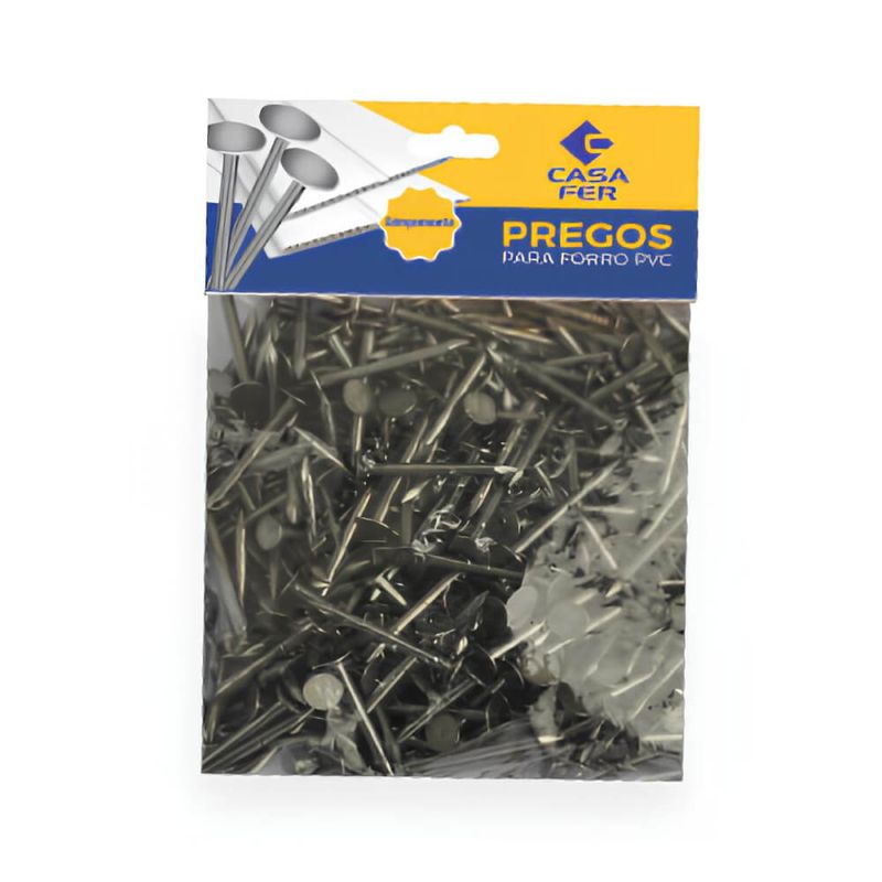 O Prego Casafer para Forro de PVC possui a cabeça maior, proporcionando maior fixação do forro em Madeira ou PVC.