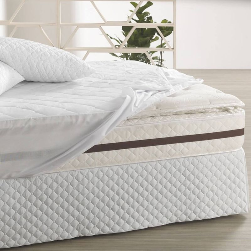 Confeccionado com a tecnologia Toque Acetinado, a superfície superior em 100% poliéster oferece uma sensação macia e delicada, adicionando uma camada aveludada e aconchegante sob seus lençóis. A barreira impermeável, feita de 60% polietileno e 40% polipropileno, age de forma impecável, protegendo o colchão contra líquidos, manchas e alérgenos, assegurando um ambiente de descanso sempre limpo e saudável.
