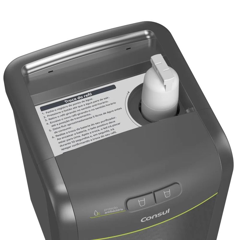 Com refil de máxima tecnologia e filtragem classe A, o Purificador de Água Consul garante máxima redução de cloro livre, retenção de partículas Classe A e eficiência bacteriológica!
