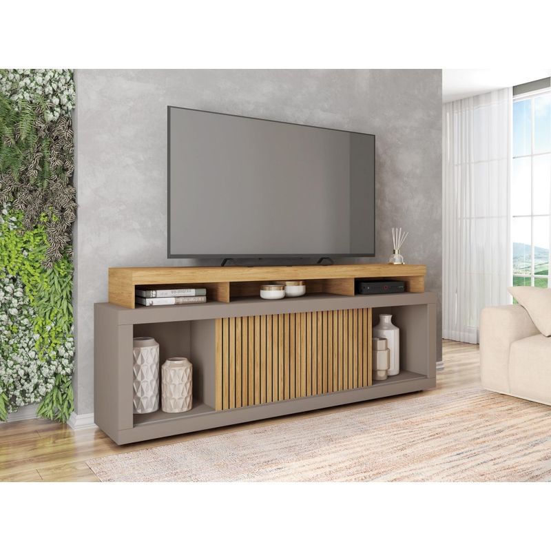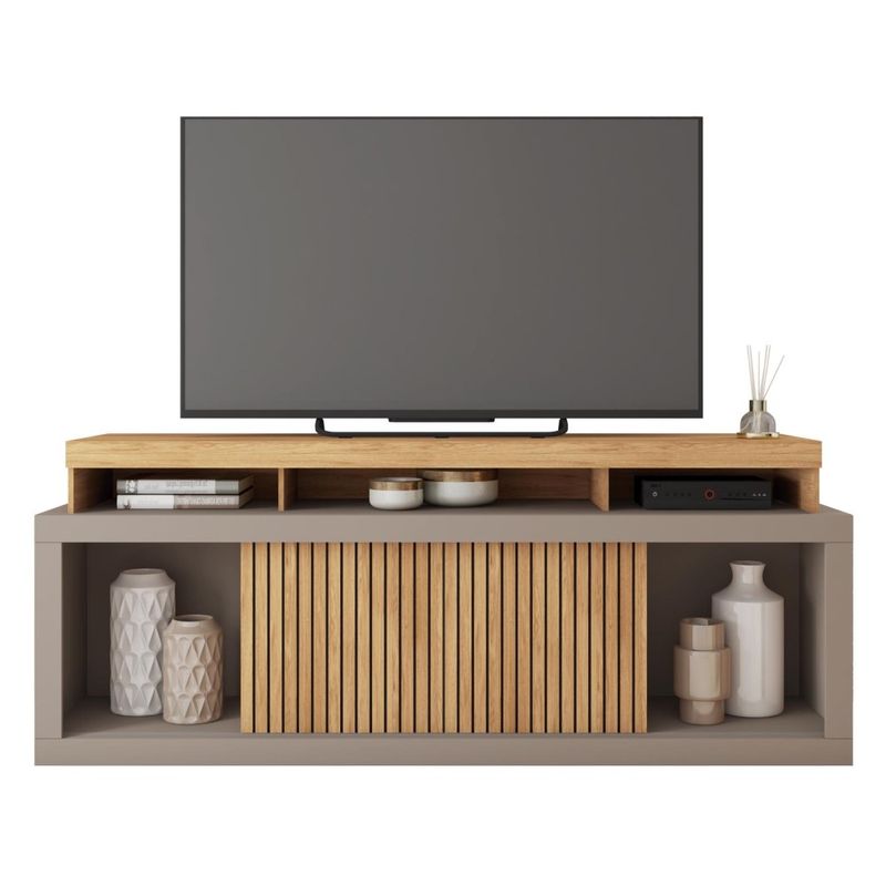 O Painel Origem 1.8 é compacto e versátil. Seu tampo é robusto em MDP de 25mm, os nichos estruturados permitem acomodar diversos objetos e eletroeletrônicos.