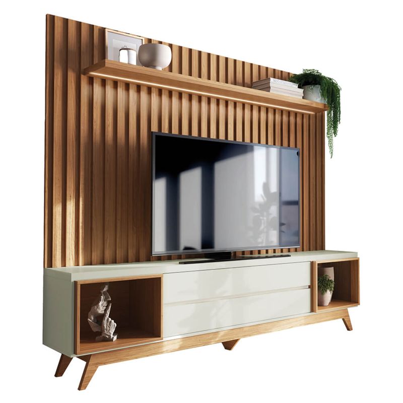 Eleve o padrão da sua sala de estar com o imponente Conjunto Rack com Painel TB343F. Com um design contemporâneo que une o tom amadeirado Freijó à leveza do Off White, este móvel é a peça-chave para quem busca modernidade e aconchego.