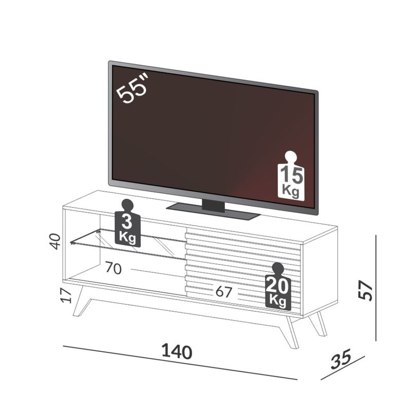 Dimensões (AxLxP): 57 X 140 X 35 cm