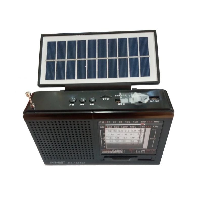 Funções: USB, Cartão Micro SD, MP3 Player, Bateria interna recarregável, Placa Solar para carga de bateria