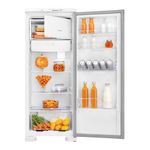 Basta pressionar o botão para descongelar, sem precisar desligar o refrigerador. Após o degelo, ele volta a funcionar automaticamente.