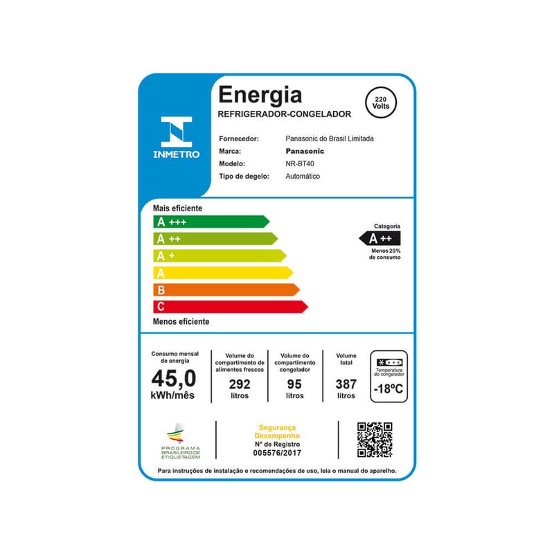 A geladeira BT40 da Panasonic possui um baixo consumo de energia. Menos gasto para o bolso e mais amigável com o planeta! Com o painel eletrônico, é possível controlar a temperatura do freezer diretamente no painel externo com design inovador. Além dsso, possui um Jumbo Freezer com 95L para caber todos os alimentos da família, com prateleiras profundas para potes de sorvetes de 2L.