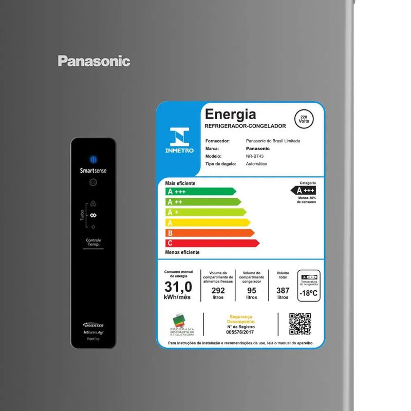 Com mais de 45% de economia de energia*, a Geladeira Panasonic BT43 tem o menor consumo do Brasil: Sim