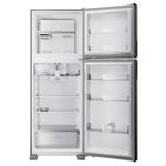 Acabamento interno: Prateleiras do refrigerador em vidro com perfil traseiro em plástico extrudado e perfil frontal em plástico extrudado; Prateleiras de porta em plástico injetado e texturizado; Gaveta de legumes em plástico injetado, texturizado e tampografado; Tampa de gaveta de legumes em plástico injetado.