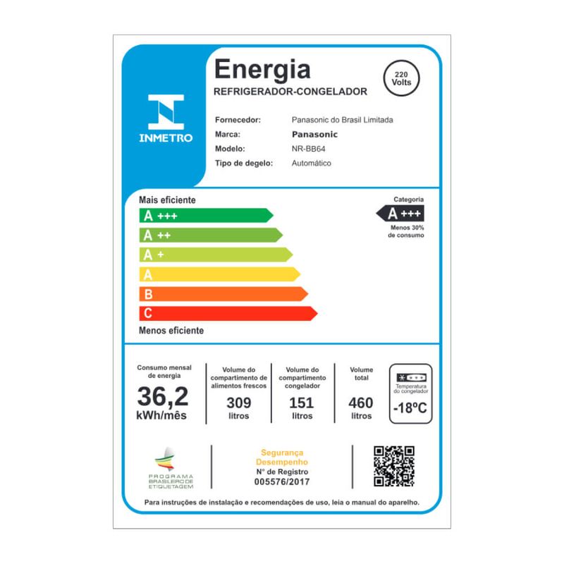As geladeiras Panasonic têm menor consumo de energia e possuem a classificação A+++ na tabela do Inmetro.