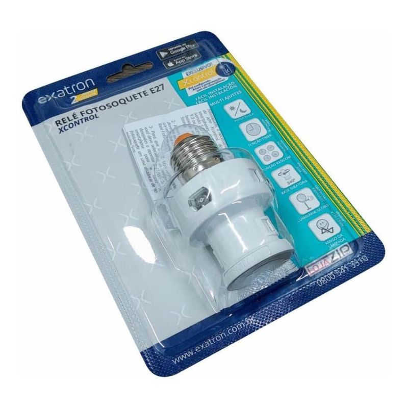 O Relé Fotosoquete Microcontrolado E27 é destinado ao acionamento e temporização da lâmpada, liga na ausência de luz natural e desliga de acordo com o tempo programado ou na presença de luz natural