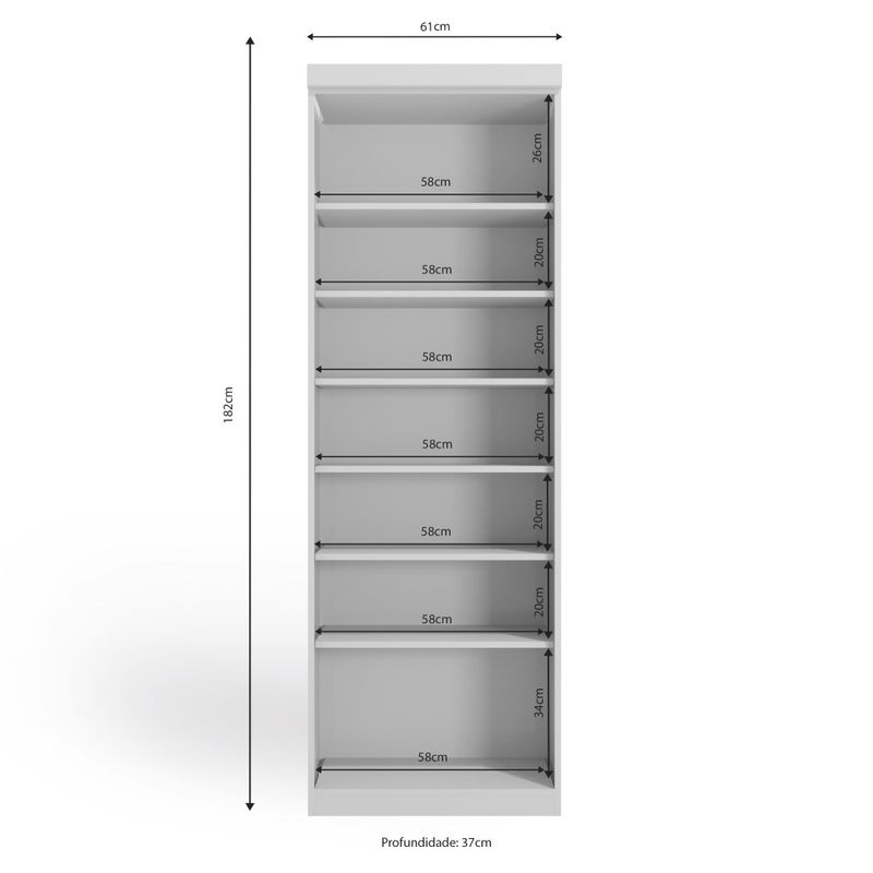 Dimensões (AxLxP): 182 x 61 x 37 cm