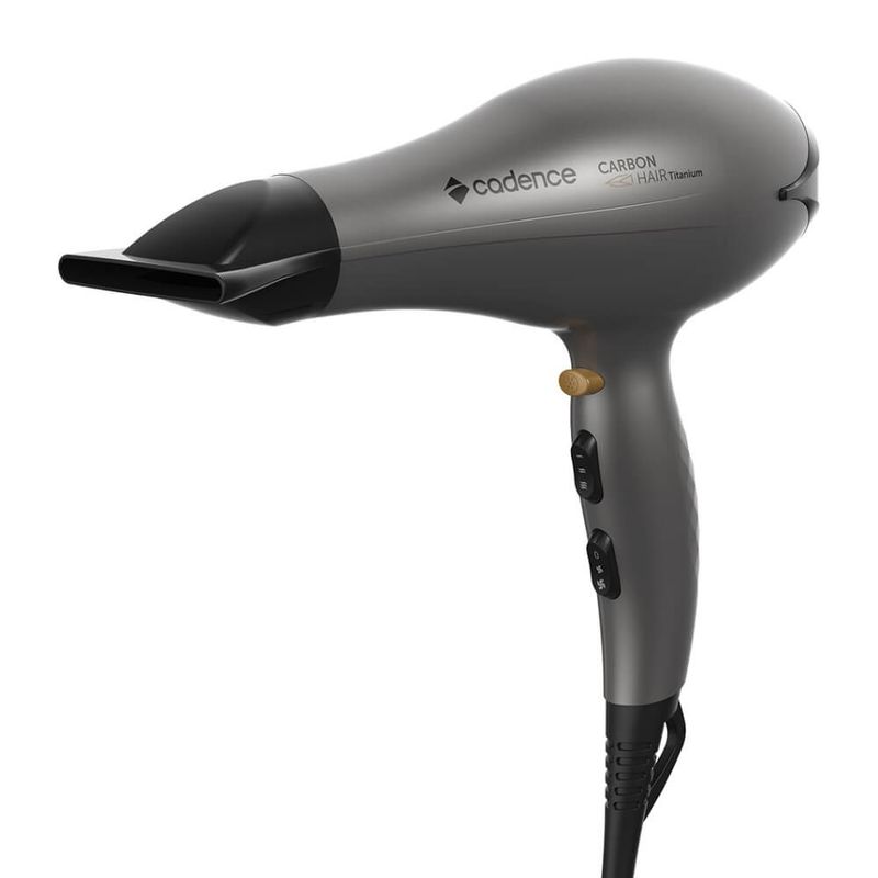 Com motor AC profissional, o mesmo motor usado nos secadores de salões de beleza, Carbon Hair Titanium Cadence, tem 3 temperaturas, 2 velocidades e muita potência para mais horas de uso e secagem mais rápida dos cabelos. O botão de jato frio ajuda a finalizar e fixar o penteado para um acabamento mais duradouro.