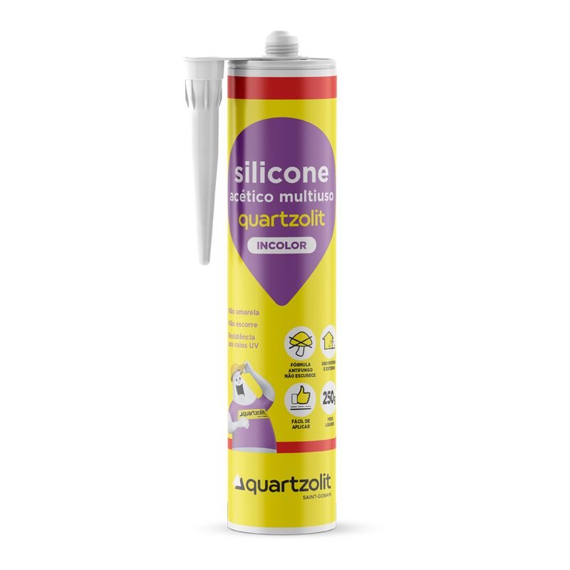 Silicone acético quartzolit é um selante incolor de cura acética com fungicida para áreas internas e externas