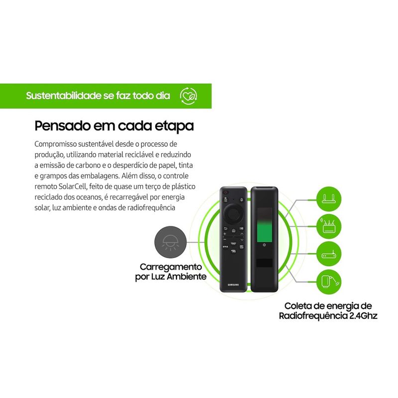 Intensificamos o nosso compromisso sustentável desde o processo de produção, utilizando material reciclável e reduzindo a emissão de carbono e o desperdício de papel, tinta e grampos, além de oferecer uma solução criativa e usual para a casa, já que as caixas dos produtos viram utensílios ou objetos decorativos. Além disso, o controle remoto SolarCell, agora ainda mais compacto, é feito de quase um terço de plástico reciclado dos oceanos e é recarregável por energia solar, luz ambiente e ondas de radiofrequência, evitando o desperdício de milhões de pilhas no meio ambiente.