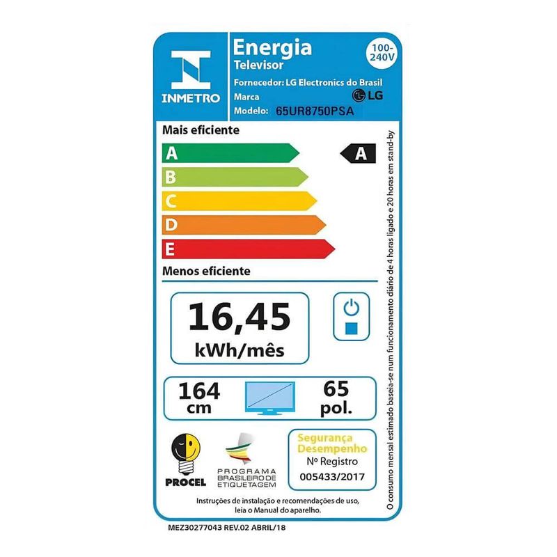 Tamanho da tela: 65"