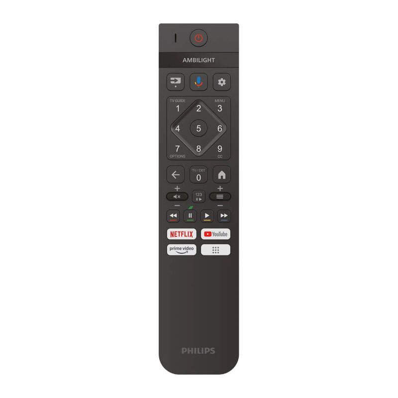 Características do controle remoto: Comando de Voz c/ Google Assistant, Botões de atalho Netflix, Youtube e Prime Video