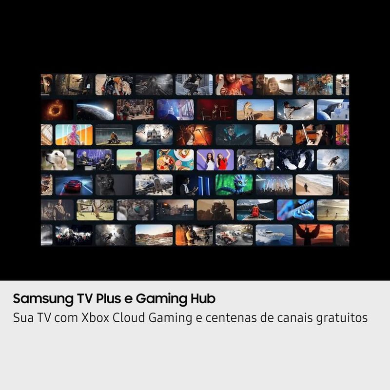 Acesse milhares de jogos nas plataformas Xbox Cloud Gaming e Nvidia GeForce Now, sem necessidade de downloads ou de consoles. E, com o Samsung TV Plus e apps parceiros*, desfrute de canais de filmes, notícias, infantil, esportes, novelas e músicas, tudo grátis e sem assinatura.
