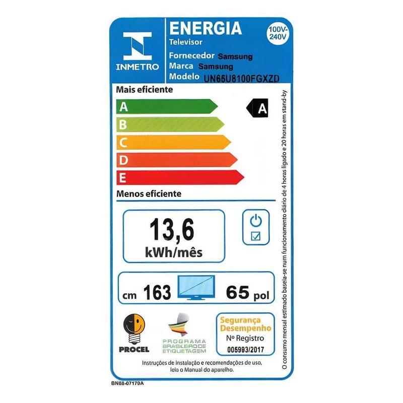 O sensor da TV detecta automaticamente o nível de iluminação do ambiente e ajusta o brilho do aparelho, além de analisar cena a cena e também gerencia sutilmente o nível de brilho da tela, o que diminui o gasto de energia da TV.