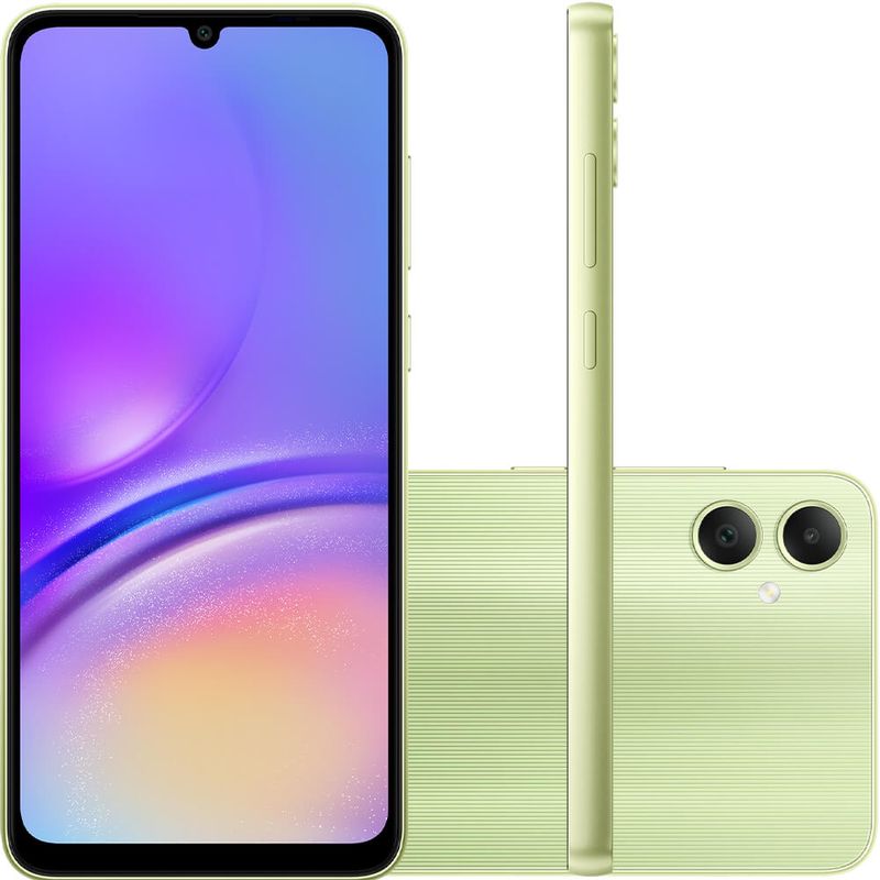 Disponível em Preto, Prata e Verde, o Galaxy A05 está disponível em uma estrutura resistente com um padrão linear na parte traseira.