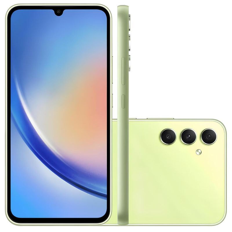 Desenhado com linhas simples e acabamento em glastic (vidro e plástico), o Galaxy A34 5G está disponível em cores modernas e atemporais incluindo verde lima, prata, violeta e preto.