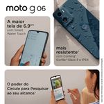 O moto g06 tem a maior tela da categoria, com 6,9?, resolução HD+ e imagem superbrilhante. O smartphone também tem o sistema de áudio mais avançado da sua faixa de preço. Os alto-falantes estéreo com tecnologia Dolby Atmos® entregam o dobro de potência nos graves.