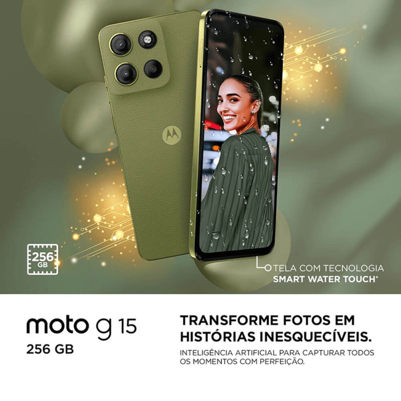 Feito com material superior, o celular moto G15 é feito para durar. Sinta o toque de luxo do acabamento em Vegan Leather.