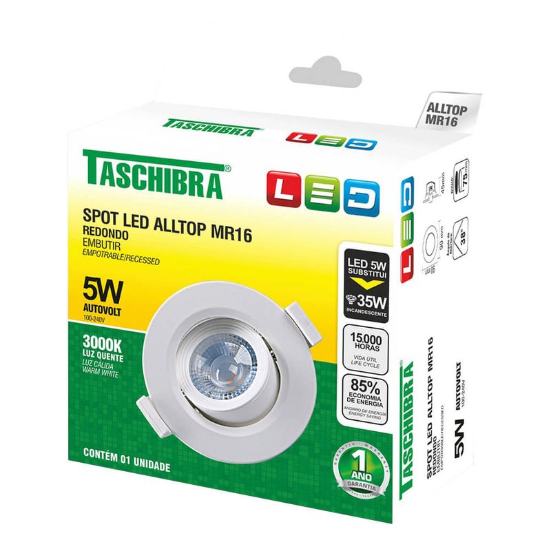 Spot LED Embutir Quadrado 5W ALLTOP 3000K MR16 Taschibra: Iluminação Versátil e Aconchegante para Seu Ambiente