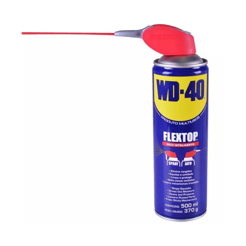 Não esqueça que com o novo bico inteligente Flex Top, você pode usar o WD-40 como spray, borrifando diretamente nas peças e superfícies, ou como jato, utilizando o canudo extensor para alcançar os lugares mais difíceis.
