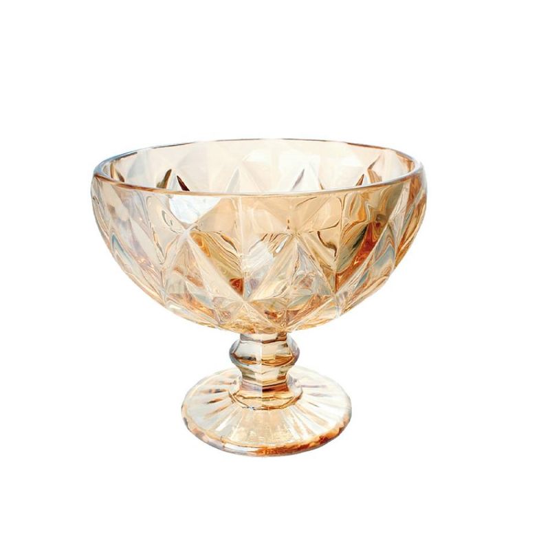 Marca: Class Home Modelo: Diamante Amber Metalizada Referência: 1351 Uso: Coquetel Material: Vidro Quantidade de peças: 01 peça Capacidade: 310 ml Peso da taça: 426 gr Dimensões (AxLxP): 10,5 x 12 x 12 cm