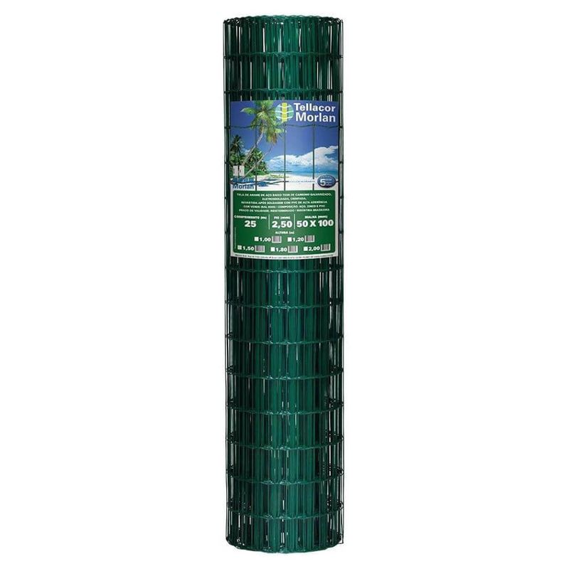 Tela Galvanizada Revestida PVC Tellacor 5x10cm 1,50m Fio 2,5mm Rolo 25m Morlan
