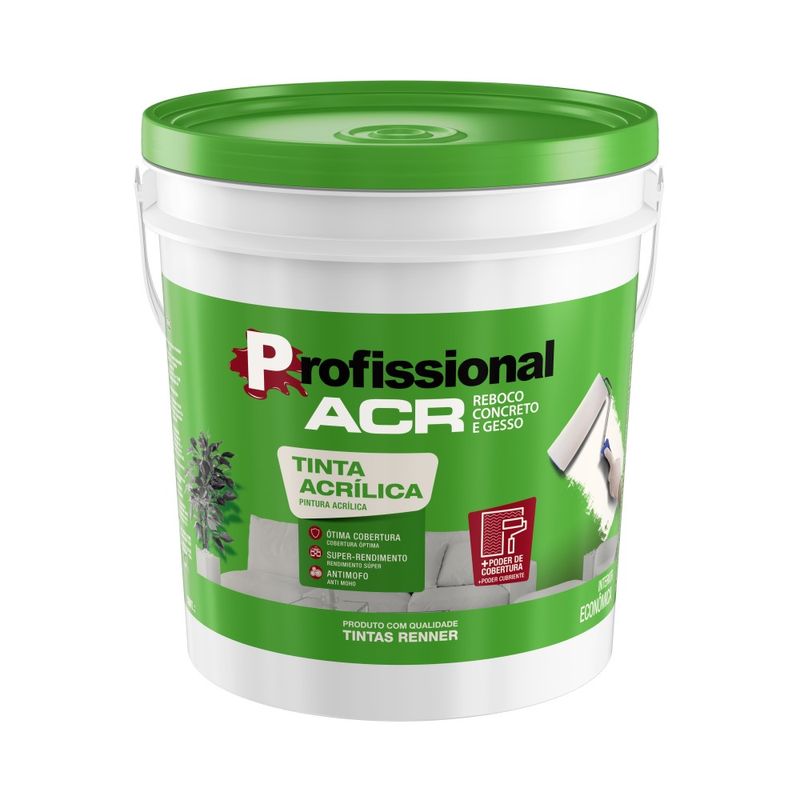 A Tinta Acrílica Profissional ACR foi especialmente formulada para quem deseja economia com qualidade. Proporciona maior durabilidade, cobertura, fácil aplicação, mínimo respingamento e excelente acabamento. Tem ótima resistência, além de oferecer excelente rendimento e ótima lavabilidade. Indicada para superfícies internas de alvenaria, reboco curado, gesso e concreto.
