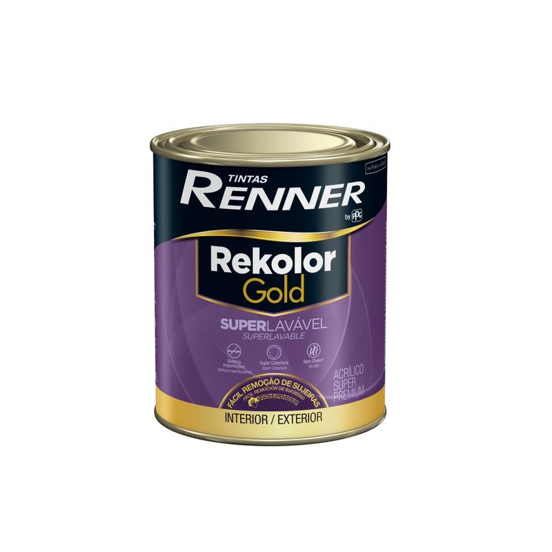 Rekolor Gold é uma linha de acrílicos premium que oferece performance superior comparada com os acrílicos convencionais. A versão SUPERLAVÁVEL proporciona um acabamento Eggshell, com um nível de brilho entre o fosco e o acetinado, ajudando a disfarçar as imperfeições da parede. Permite uma fácil remoção de sujeiras, tais como manchas de chocolate, ketchup, café, refrigerantes, sucos, lápis, caneta hidrográfica, lápis de cor, giz de cera, sangue de pernilongo e batom. Possui ótimo rendimento e baixíssimo odor. Indicado para ambientes internos e externos, em superfícies de alvenaria em geral, massa corrida, massa acrílica, reboco, concreto, fibrocimento, cerâmica não vitrificada, gesso e texturas.