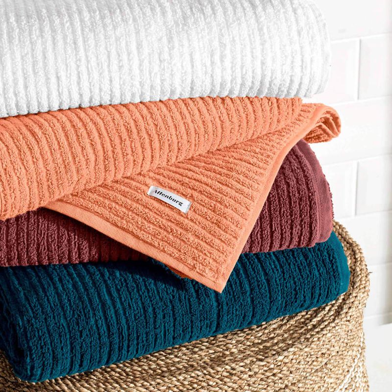 A Toalha Line pode ser coordenada facilmente com qualquer estilo, graças ao design minimalista e atemporal e seu corpo totalmente canelado. É construída em tecido Jacquard, com felpa de fio retorcido 100% algodão, garantindo volume e maior resistência do fio.