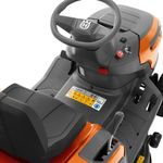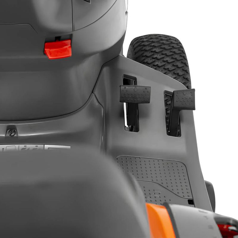 Fácil controle de velocidade e direção com transmissão hidrostática operada por pedal. Pedais separados para frente e para trás.