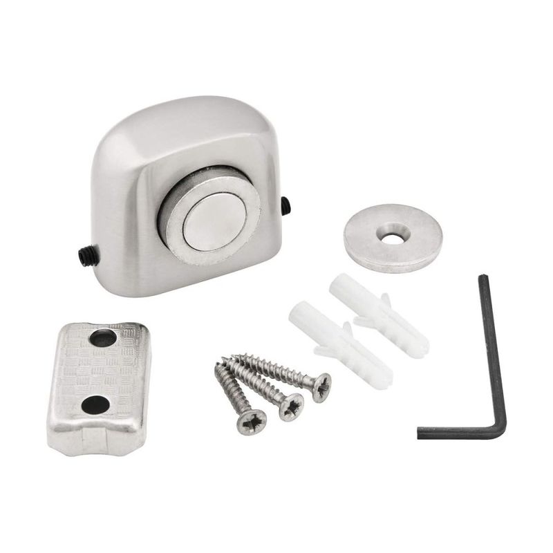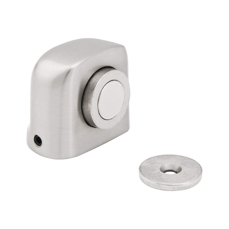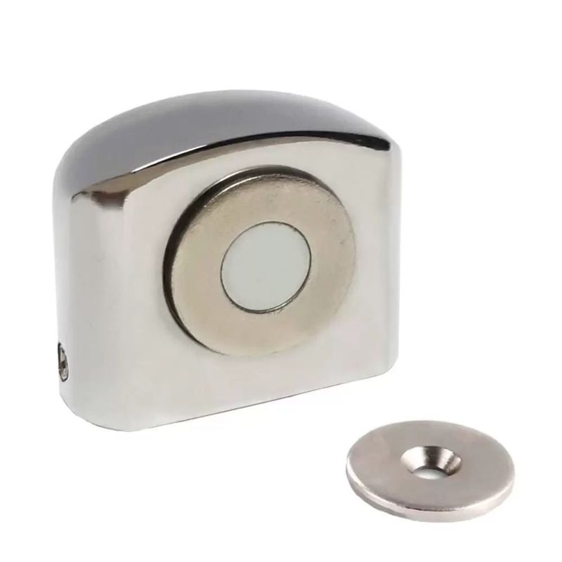 Indicado para travar a porta aberta e para instalação em banheiros ou em locais que possam ter contato com água ou umidade, pois o ímã e o batente fixado na porta não oxidam.