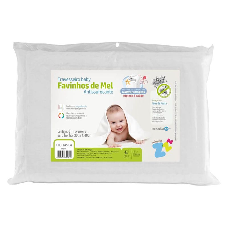O travesseiro Favinhos de Mel Baby 6+ Fibrasca traz muito conforto para o bebê. É indicado para bebês com mais de 6 meses, pois é extremamente macio e, com isso, evita a pressão na cabeça do bebê na hora de dormir. A espuma do enchimento é feita com a tecnologia exclusiva Silicomfort Fibrasca, o que permite o produto ser totalmente lavado em máquina. A capa em malha exclusiva jacquard Flor de Algodão Fibrasca traz a maciez e a delicadeza para esse produto. Praticidade, tranquilidade do soninho do seu bebê com muito conforto é Fibrasca.