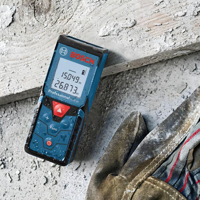 A Trena Laser Bosch GLM 40 é um medidor de distância a laser com alcance de até 40 metros que já realiza funções de calculo: com ele você pode calcular áreas, volumes e até alturas, para medir distâncias você só precisa apontar o laser para o local que deseja medir e pressionar o botão ele também permite realizar medições contínuas: veja o resultado aparecendo na tela em tempo real conforme move a trena, medição de área: meça a largura e o comprimento e o aparelho calcula na hora quantos metros quadrados tem o local, medição de volume: meça a largura, o comprimento, a altura e a trena calcula na hora, quantos metros cúbicos tem o ambiente, medição de altura indireta: calcule facilmente a altura até mesmo de locais que não têm um teto como anteparo.
