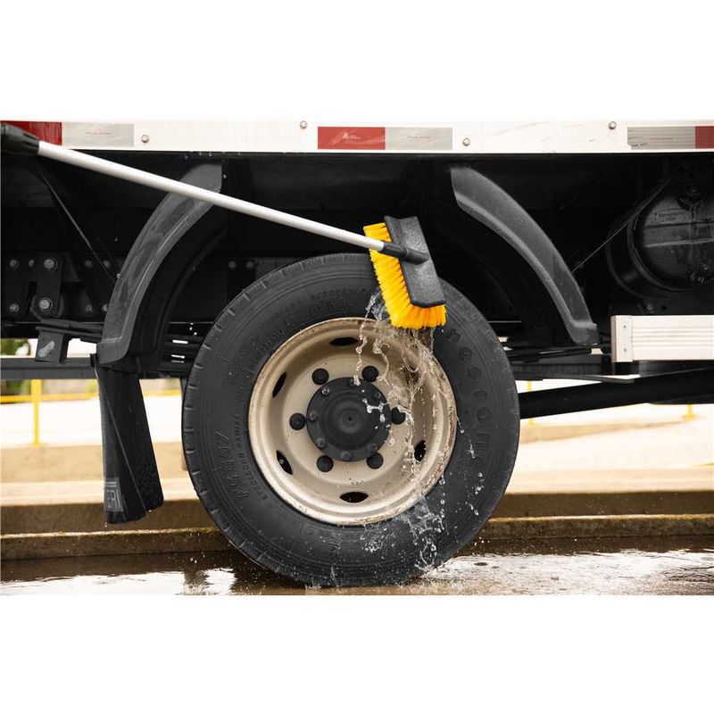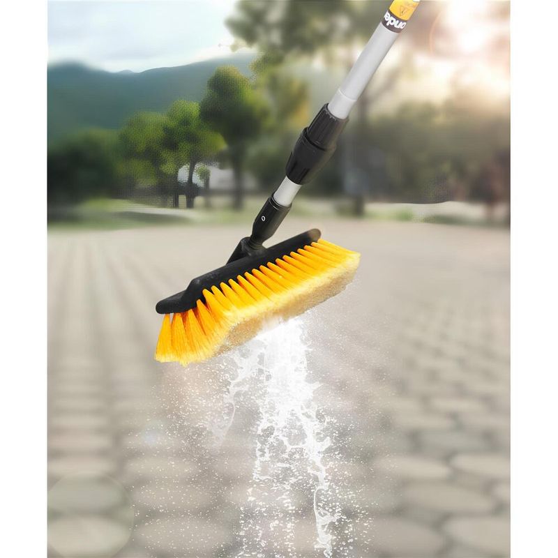 Possui cabo em alumínio, extensível, com conector para engate rápido (não acompanha engate rápido) e apoio para as mãos, além de furação interna na cepa que libera a passagem de água entre as cerdas. Conta ainda com botão abre/fecha para liberar ou bloquear a passagem de água.